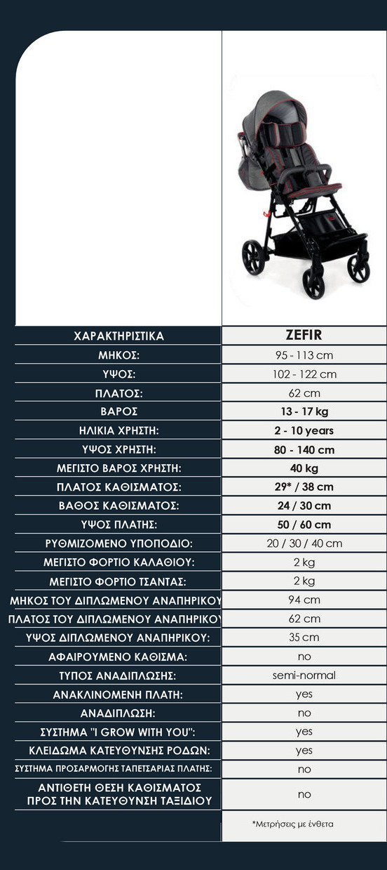 Το παιδικό αναπηρικό αμαξίδιο ZEFIR είναι ένας ελαφρύς και συμπαγής εξοπλισμός που προορίζεται για παιδιά με κινητικά ή ορθοστατικά προβλήματα.